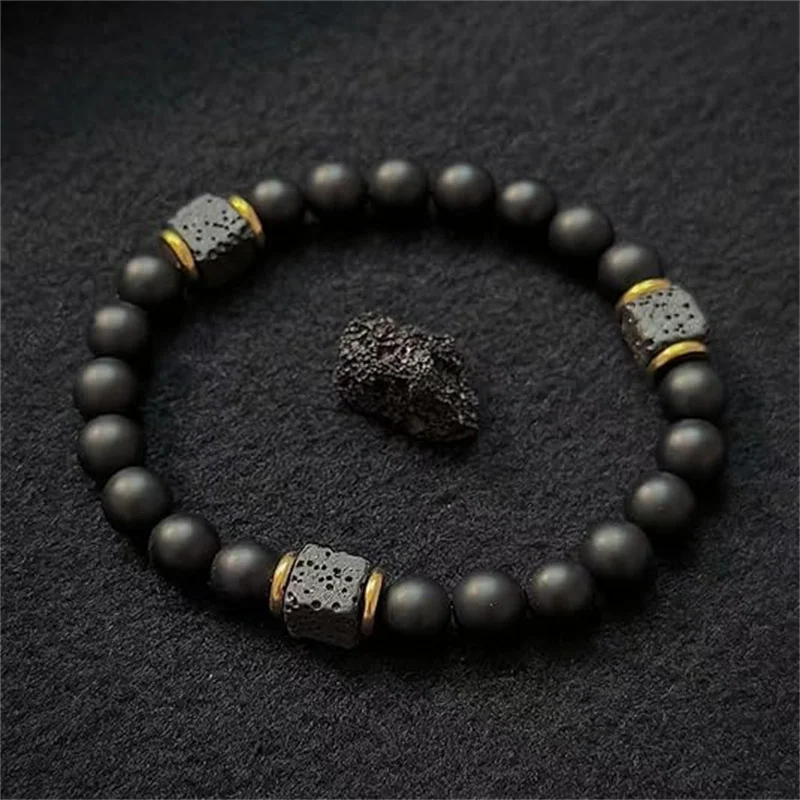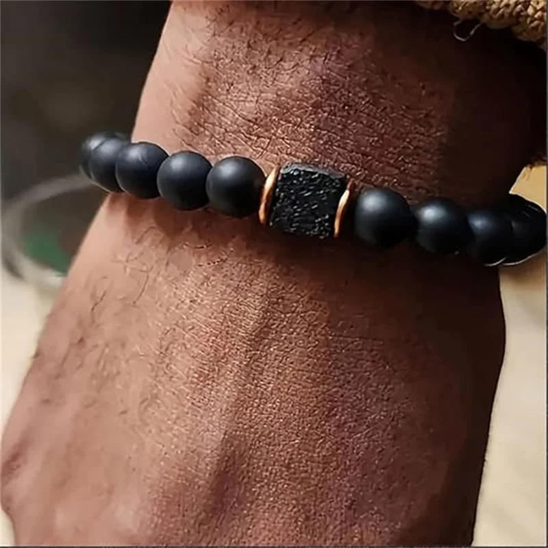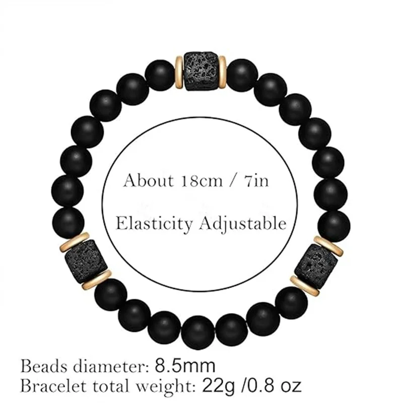 1PCS Elastic Adjustable Mens Bracelet 8mm Black Onyx & Lava Stone Beads Bracelet For Men Beads Charm Bracelet With Elastic Cord