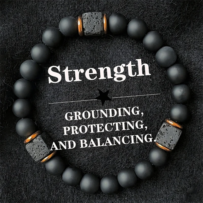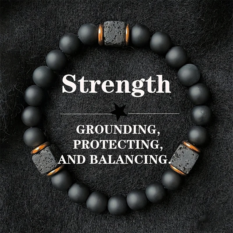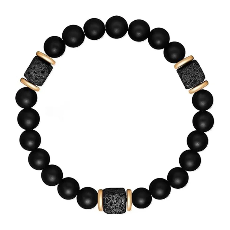 A natural stone bracelet designed for stress relief, meditation, and yoga, the Onyx and Volcanic Lava Bead Bracelet will help you release stress and gain inner peace.